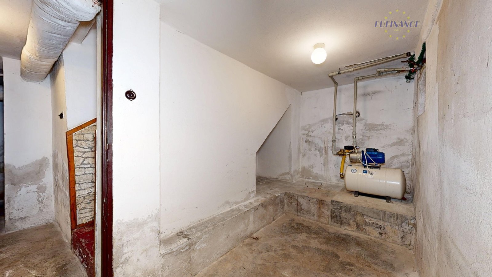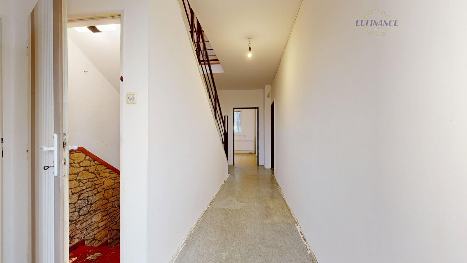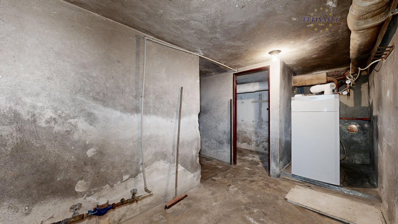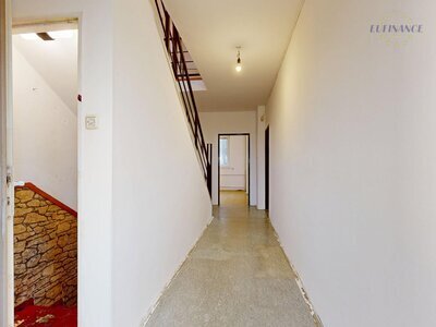 Rozvody elektřiny, topení a vody jsou původní. Celý dům je přes