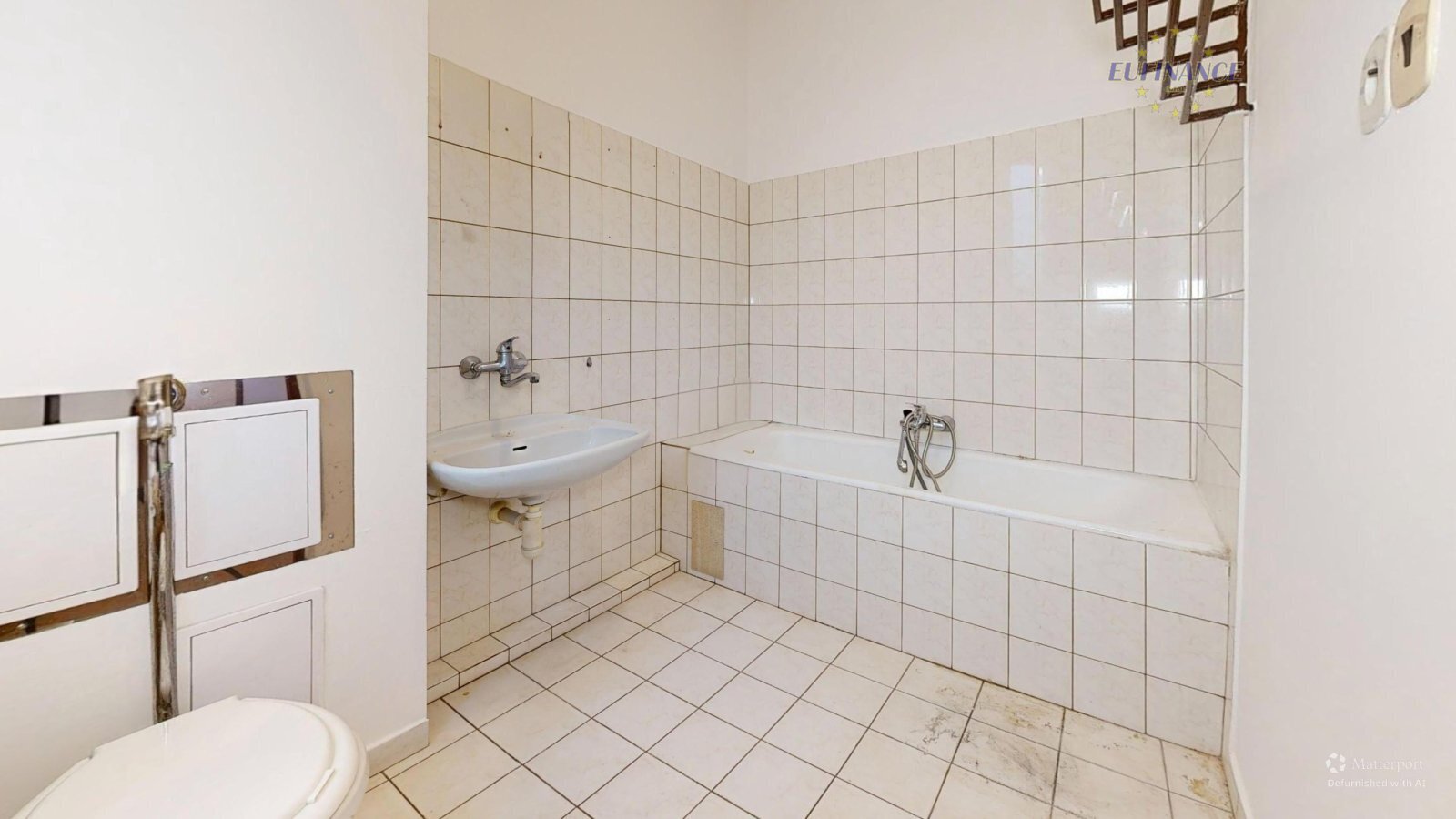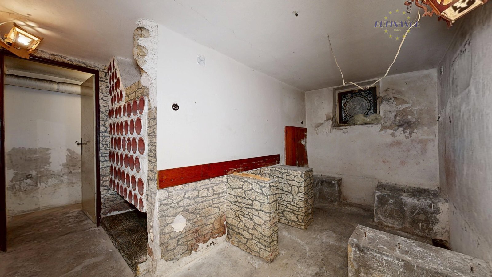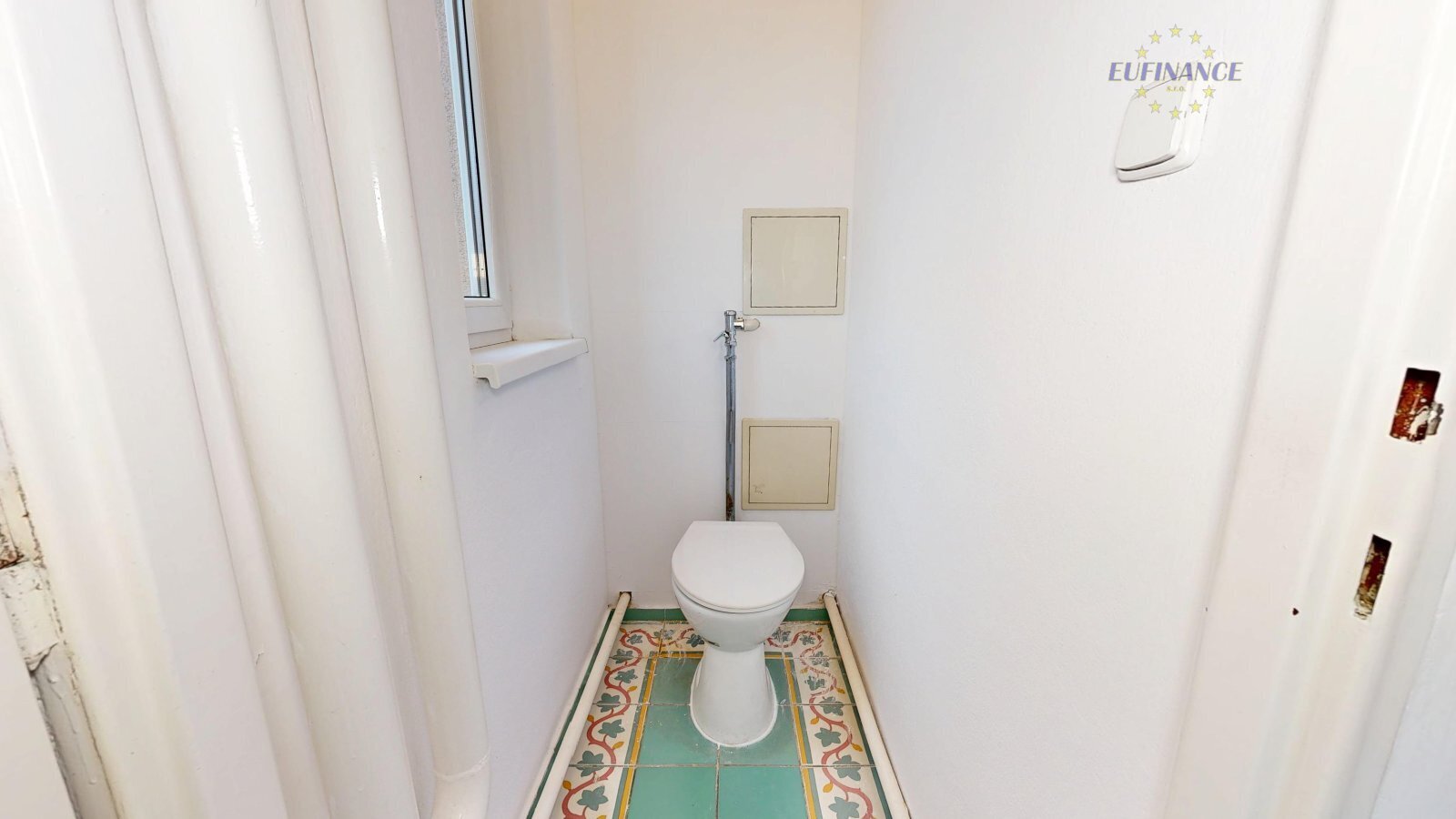Rozvody elektřiny, topení a vody jsou původní. Celý dům je přes
