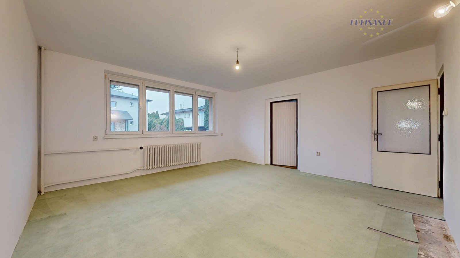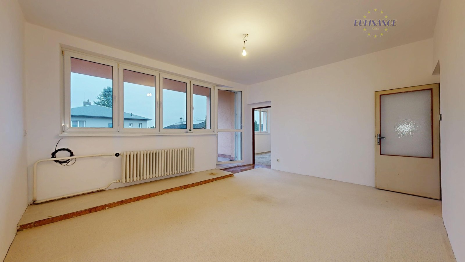 plastovými okny. Ve všech pokojích byly položené koberce nebo lina a