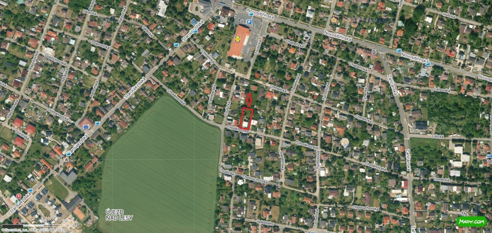 v obci Praha – Újezd nad Lesy postaveného na pozemku o celkové výměře