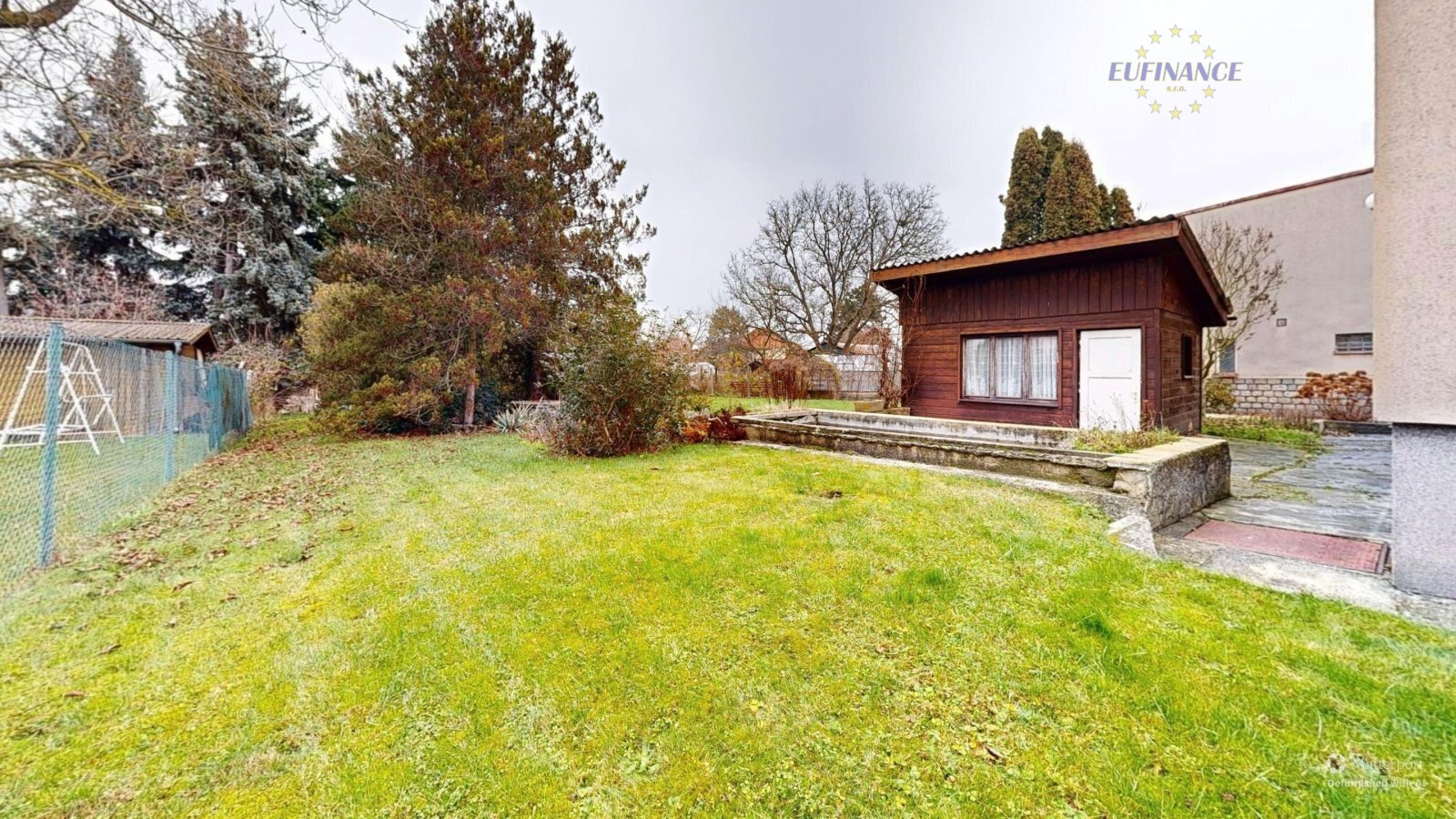 vodovod a kanalizace, plyn, elektřina 230 a 380 V). Na zahradě je