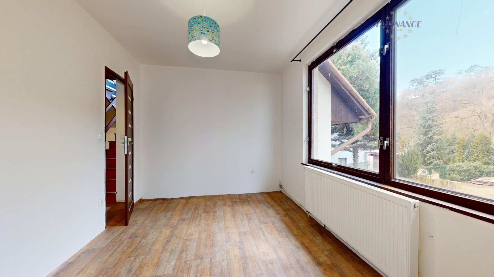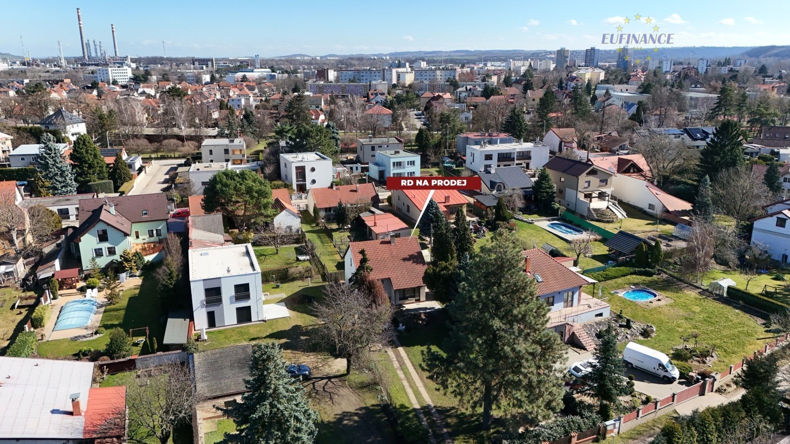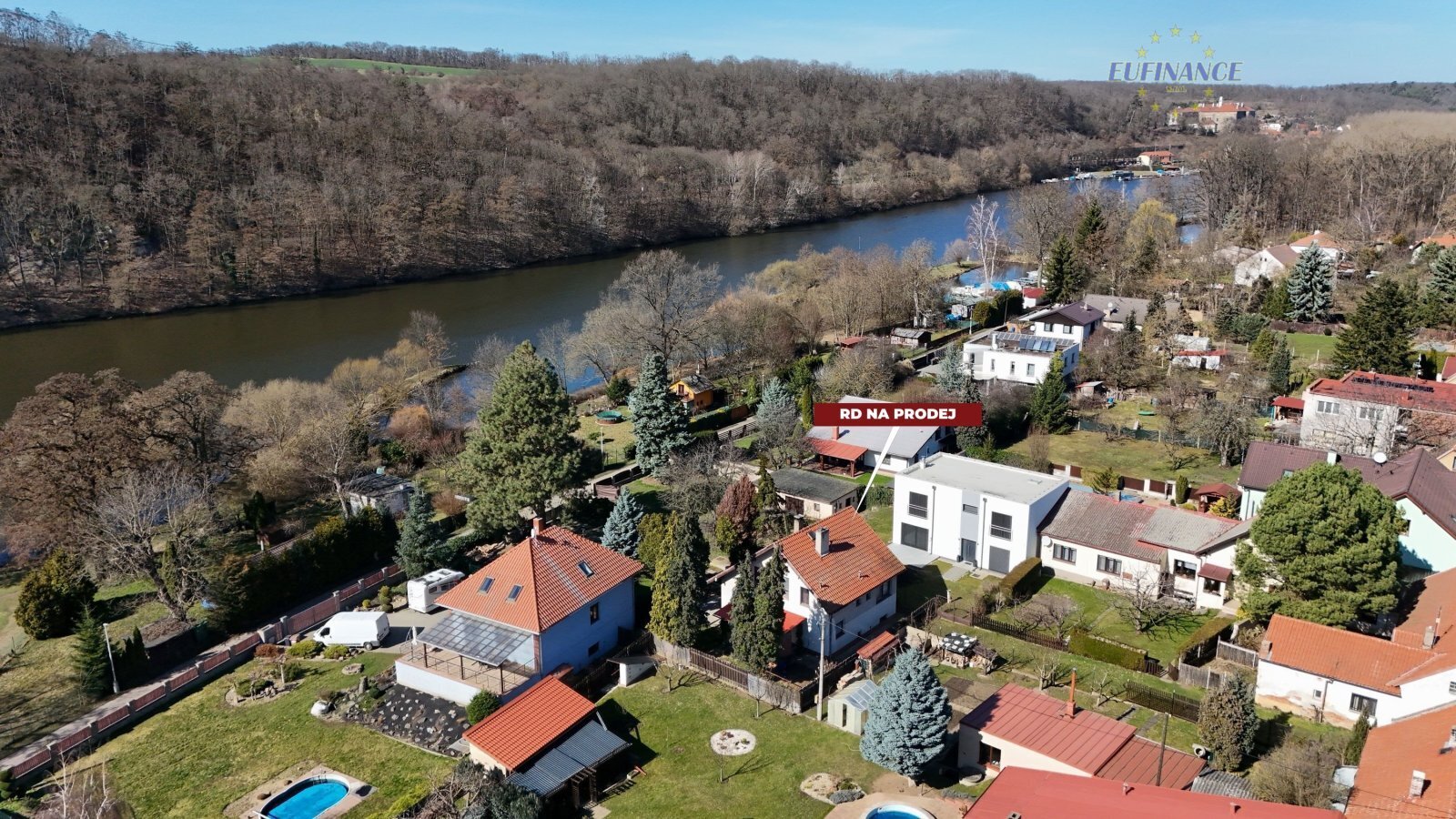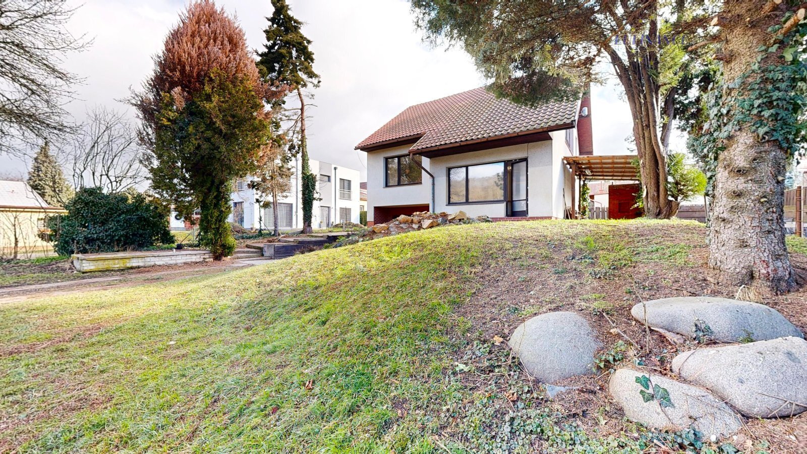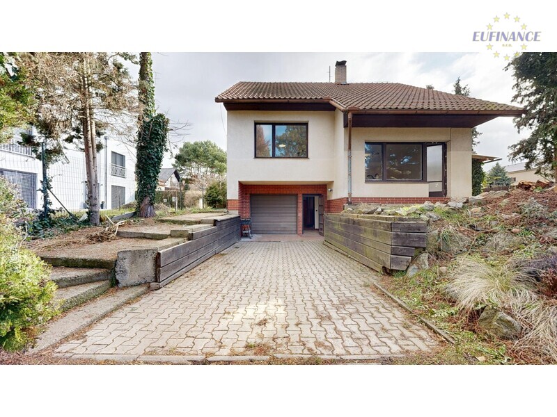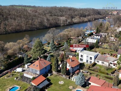vzrostlými stromy a s hezkým výhledem na řeku Vltavu. Koupi domu lze