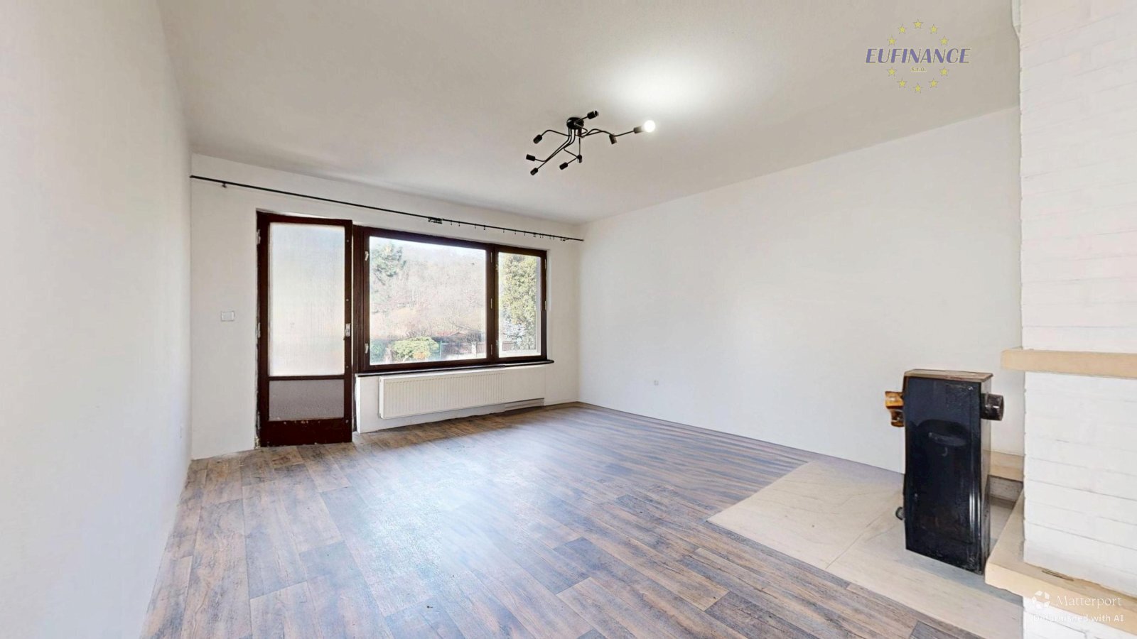 Celý dům je přes radiátory vytápěn plynovým kotlem a krbovými kamny