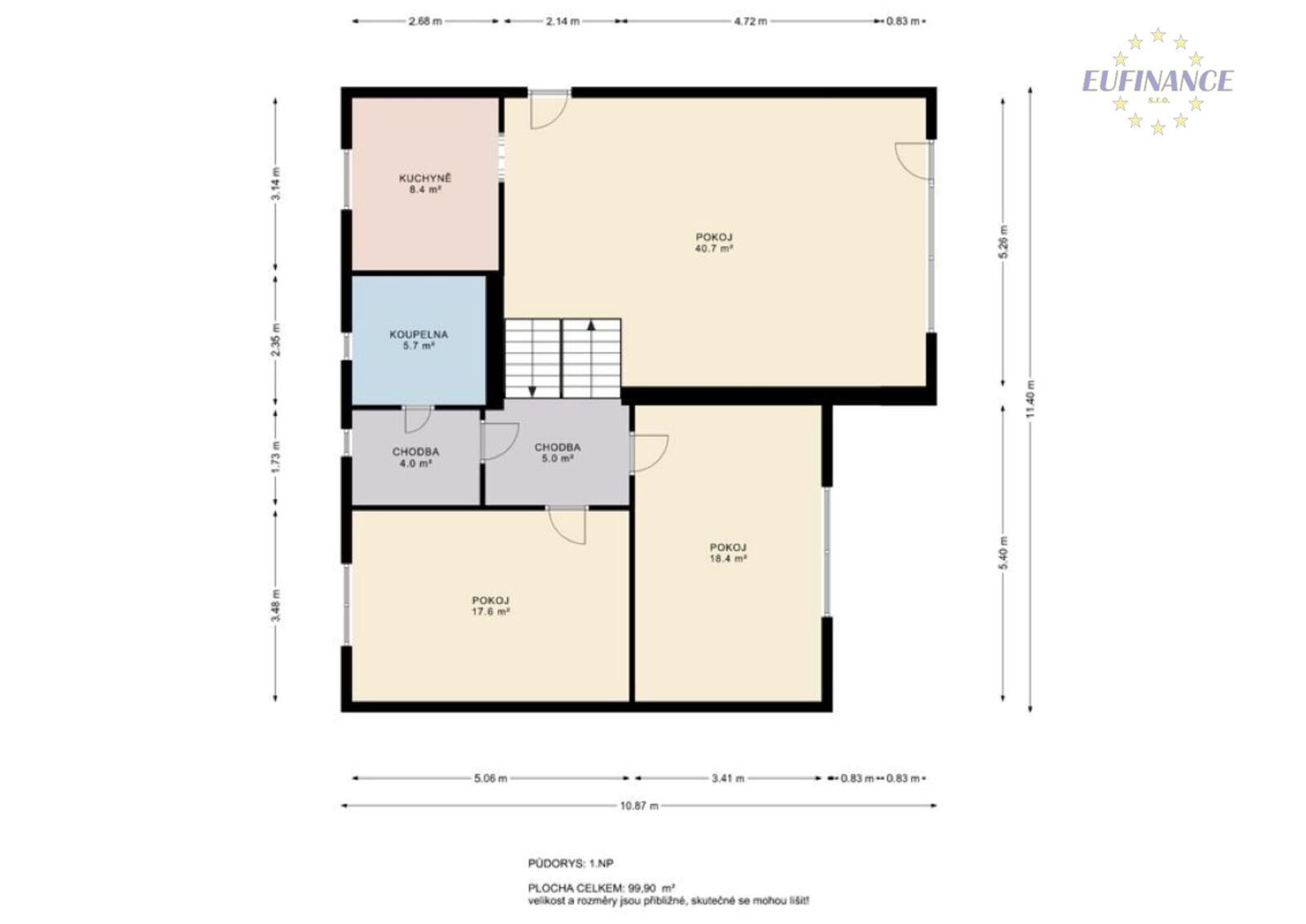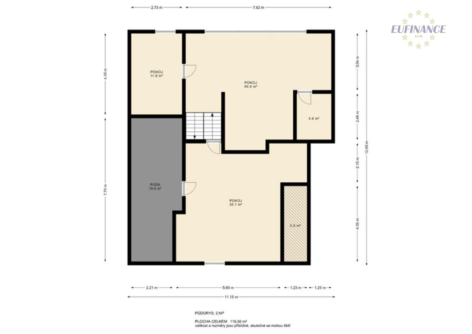 plochou 102,5 m2. Dále obě obytná patra mají užitnou plochu 221 m2.