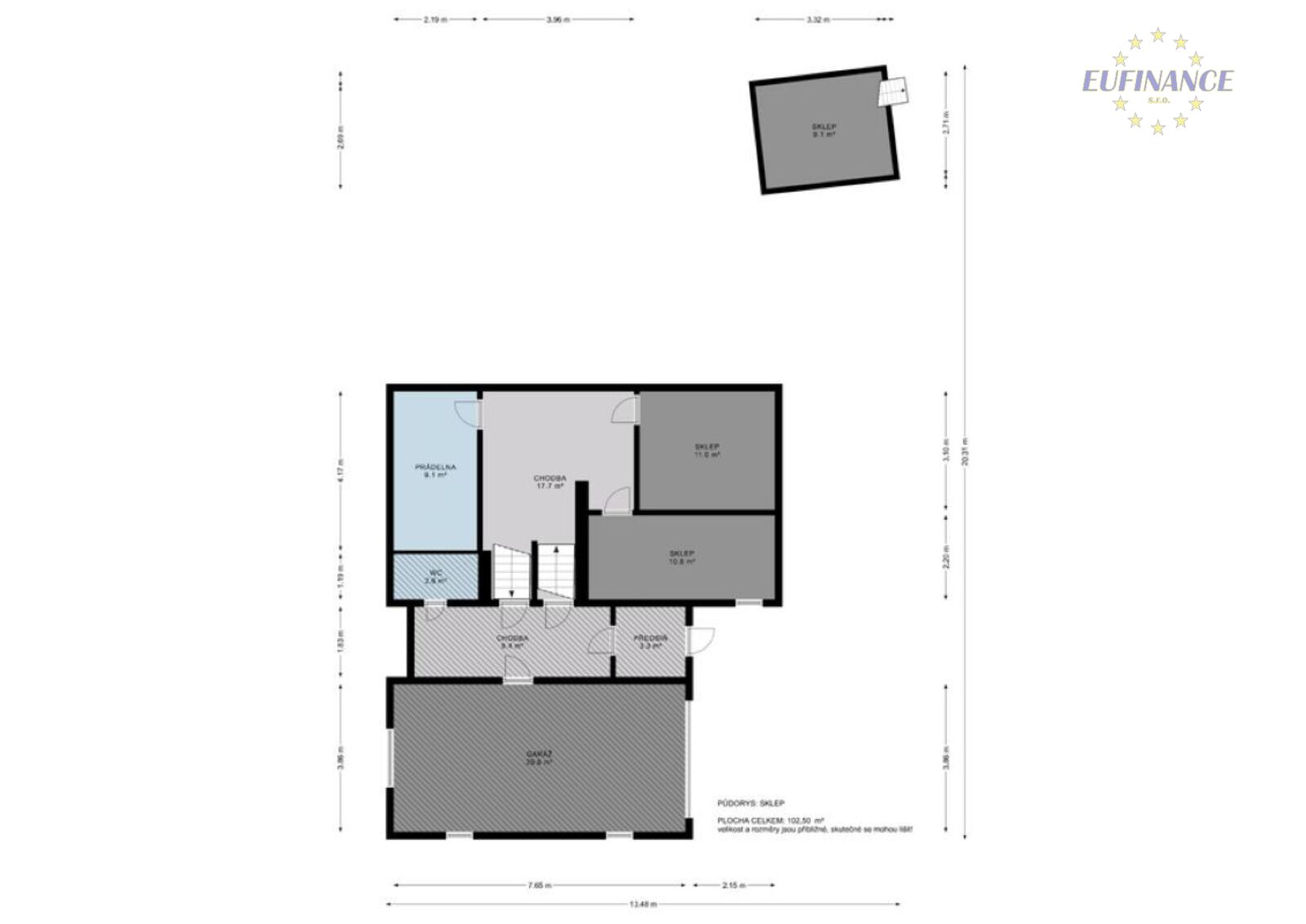 domu s dispozicí 6+1 náleží prostorný suterén s garáží s užitnou
