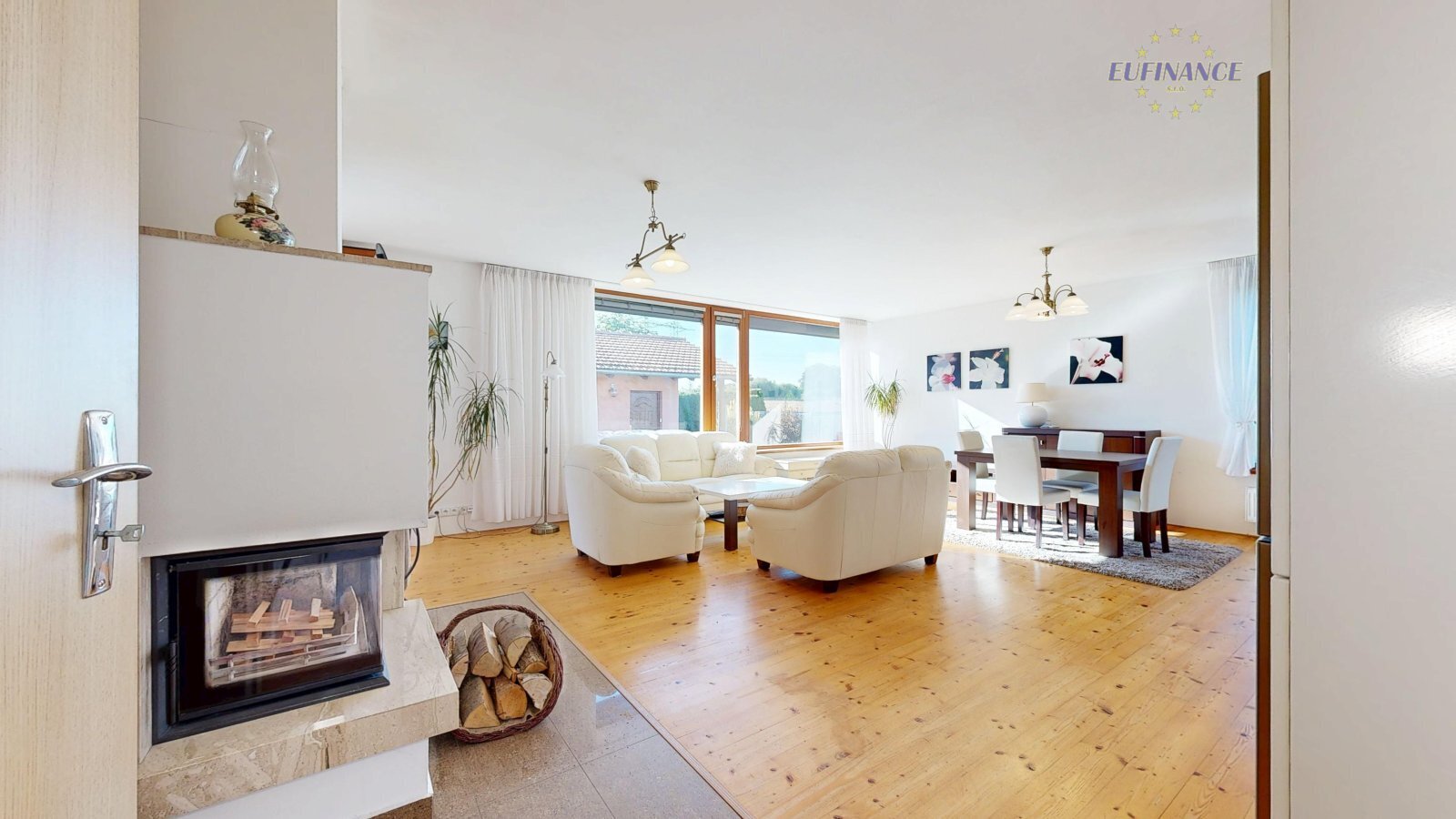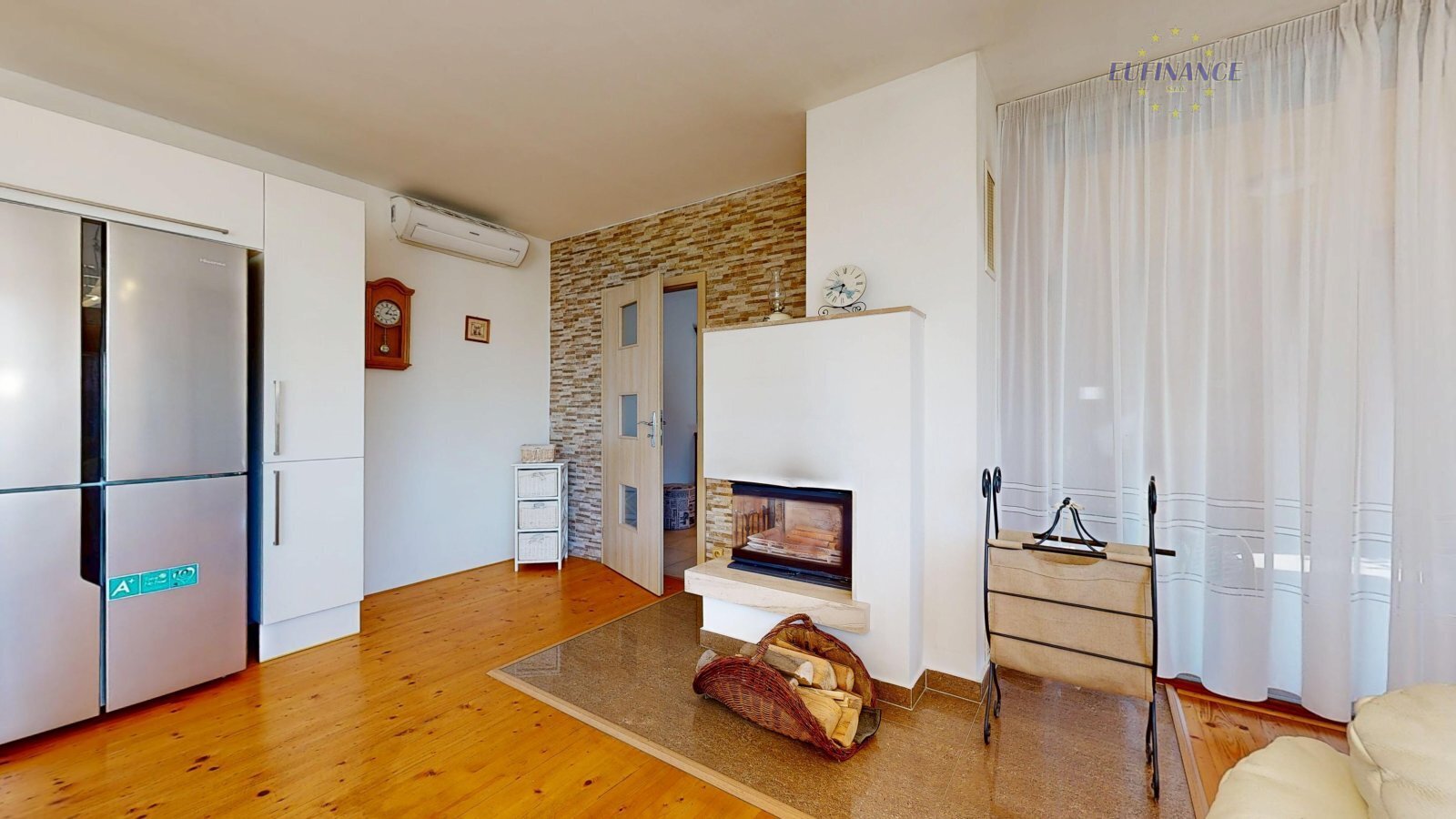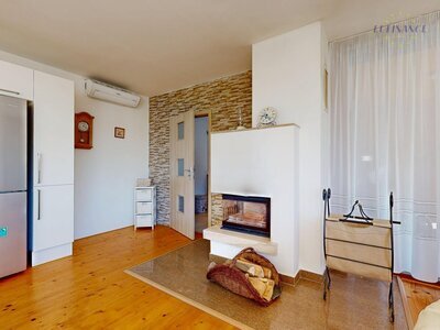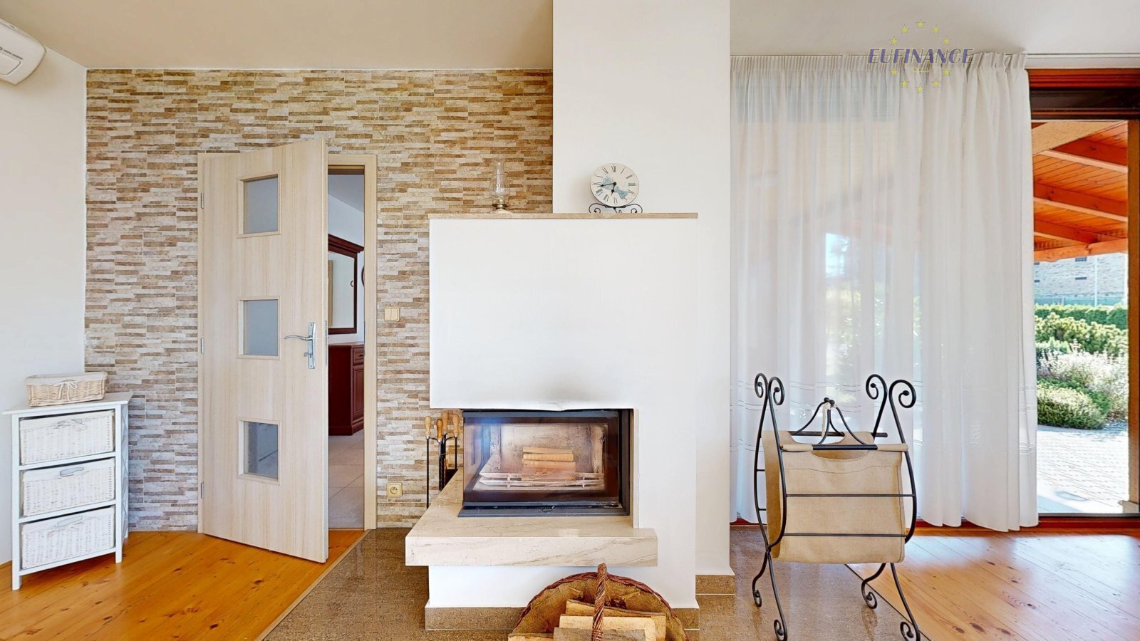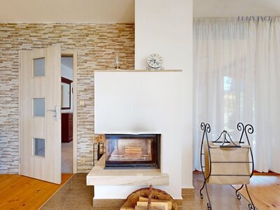je dále k dispozici klimatizace a krb s kvalitní krbovou vložkou. Do domu