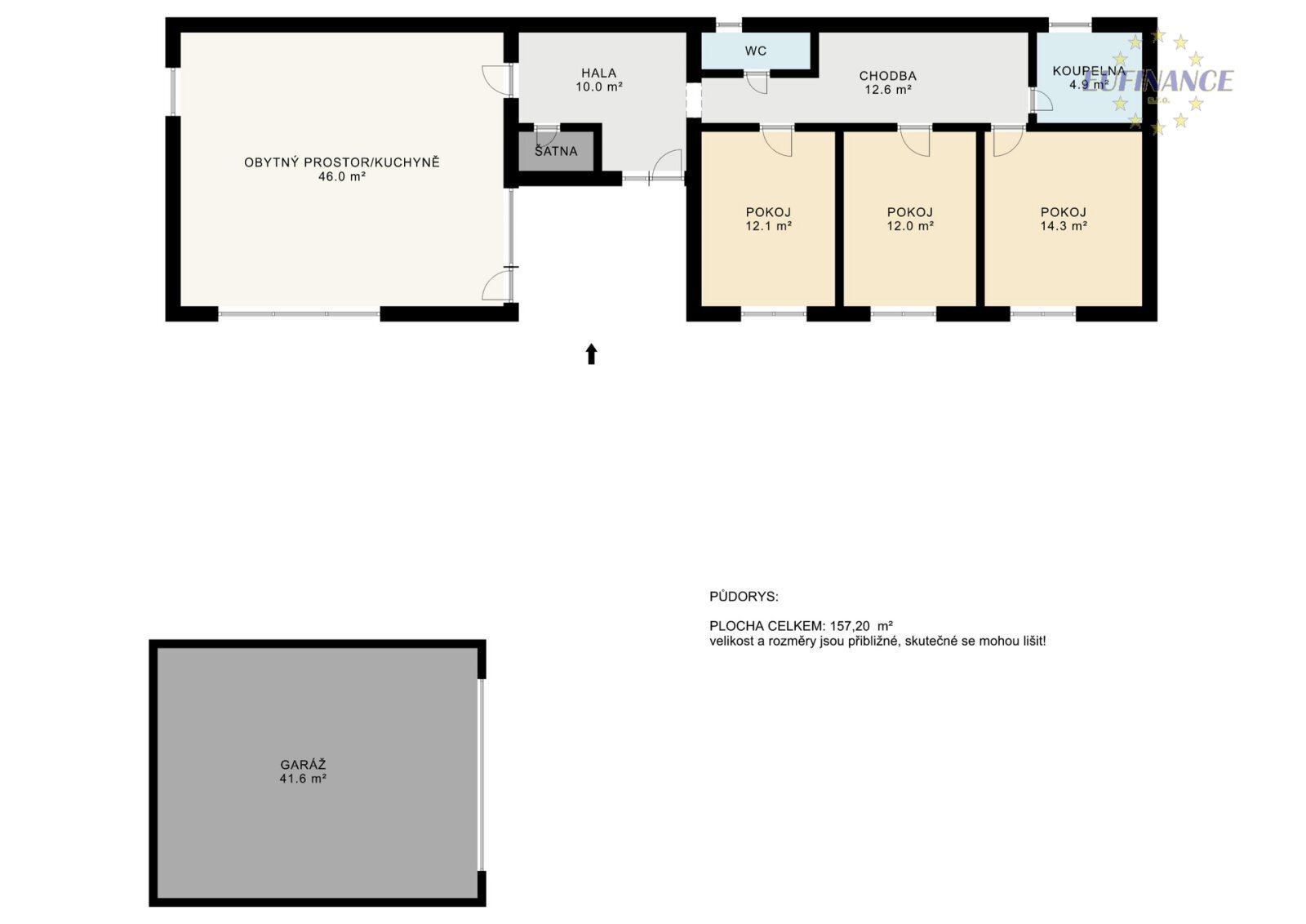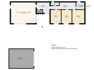 v přiloženém půdoryse. Celé přízemí je prostorné a slunné. V celém