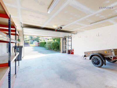 na obecním pozemku. Pojezdová brána i garáž jsou na dálkové ovládání.