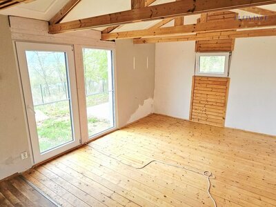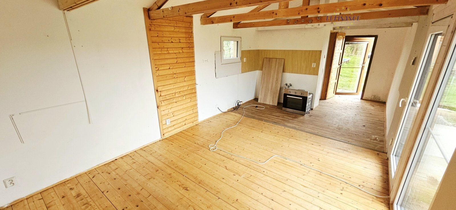 Chata s užitnou plochou 42 m2 a je napojena na elektřinu a dočasně na