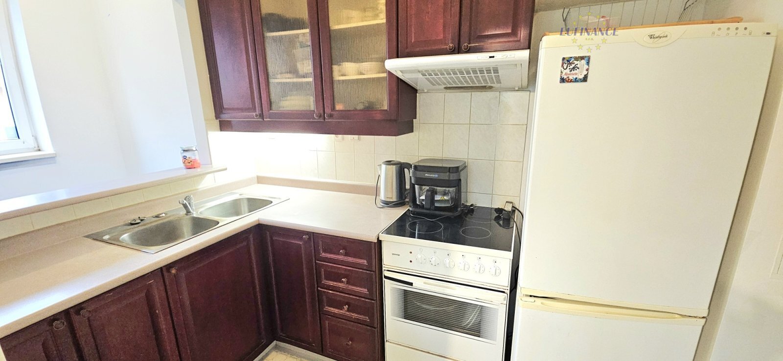 v plastu, stoupačky v plastu, zachovalá kuchyňská linka vč.