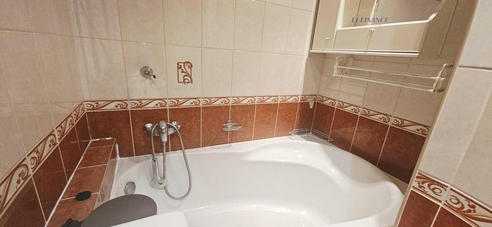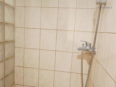 rozvody elektřiny v mědi a vody v plastu, zachovalá sanita a obklady