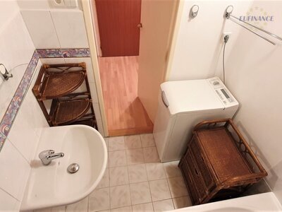 nové lino. V koupelně a na WC je dlažba a obklady, vana a pračka, rozvody